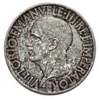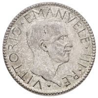 50 Lire Impero 1936 - Zecca: Roma - Diritto: effigie del Re a sinistra - Rovescio: insegna imperiale con aquila e scudo sabaudo - gr. 4,39 - Molto rara - Praticamente FDC