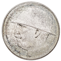 100 Lire Impero 1937 - Zecca: Roma - Diritto: effigie del Re a destra - Rovescio: littore in cammino verso sinistra regge un fascio sulla spalla destra - gr. 5,23 - Estremamente rara - q.FDC