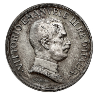 50 Centesimi Leoni 1919 Prova - Zecca: Roma - Diritto: effigie del Re a sinistra - Rovescio: l'Italia seduta a destra su quadriga di leoni al passo verso destra; nel campo, a destra, la dicitura PROVA - gr. 5,86 - Molto rara - FDC