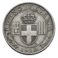 1 Lira Quadriga Briosa 1915 Prova - Zecca: Roma - Diritto: effigie del Re a destra - Rovescio: l'Italia elmata con scudo e ramo d'ulivo su quadriga briosa a sinistra; nel campo, in alto, la dicitura PROVA - gr. 5,00 - Rara - Patina iridescente, FDC