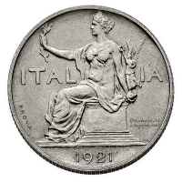 Buono da 1 Lira 1921 Prova - Zecca: Roma - Diritto: l'Italia seduta a sinistra - Rovescio: valore entro corona di alloro; a sinistra, lungo il contorno, la dicitura PROVA - gr. 8,12 - Rara - FDC