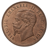 10 Centesimi 1862 - Zecca: Milano - Diritto: effigie del Re a sinistra - Rovescio: valore entro due rami di alloro e di quercia annodati alla base - gr. 9,95 - Rame rosso, q.FDC