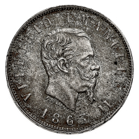 2 Lire Valore 1863 - Zecca: Napoli - Diritto: effigie del Re a destra - Rovescio: valore su due righe orizzontali con alla base due rami di alloro - gr. 10,05 - Patina di medagliere, migliore di SPL