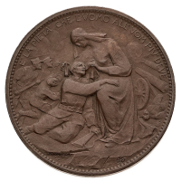 Monete-Medaglie a favore della Croce Rossa Italiana - 10 Centesimi 1915 - Zecca: Stabilimento Johnson Milano - Diritto: crocerossina nell'atto di soccorrere un soldato ferito su un campo di battaglia - Rovescio: croce rossa in scudetto a smalti in trincea - gr. 10,00 - leggi tutto