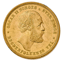 Oscar II (1872-1905) - 20 Kroner 1886 - Diritto: effigie del Re a destra - Rovescio: padiglione ornato e coronato - gr. 8,97 - q.FDC
