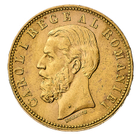 Carol I (1881-1894) - 20 Lei 1883 - Zecca: Bucarest - Diritto: effigie del Re a sinistra - Rovescio: stemma coronato - gr. 6,44 - Migliore di BB