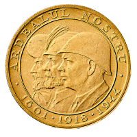 Michael I (1940-1947) - 20 Lei 1944 - Zecca: Bucarest - Diritto: le effigie dei tre Re Michael il Coraggioso, Ferdinando I e Michele I a sinistra - Rovescio: testa d'aquila circondata da stemmi - gr. 6,52 - q.FDC