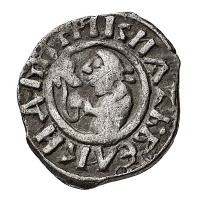 Dmitry Donskoy (1362-1389) - Denga - Diritto: guerriero a destra tiene una spada con la mano destra e un'ascia con la sinistra - Rovescio: legenda in arabo - gr. 0,86 - Estremamente rara - BB - Proveniente dall'asta Katz eAuction 26, 1.11.2019, n. 2279 ivi indicata come leggi tutto