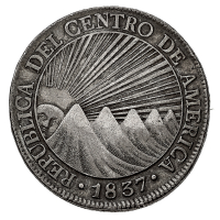 Repubblica (1823-1838) - 8 Reales 1837 - Zecca: Città del Guatemala - Diritto: il Sole nascente che illumina i cinque vulcani simboli della Repubblica Federale - Rovescio: valore ai due lati di un albero - gr. 26,70 - BB
