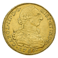 Carlo III (1759-1788) - 8 Escudos 1787 NR-JJ - Zecca: Santa Fe de Nuevo Reino - Diritto: effigie del Re a destra - Rovescio: stemma coronato e circondato dal Collare del Toson d'Oro - gr. 26,99 - Migliore di BB