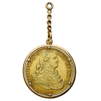 Ferdinando VII (1808-1833) - 8 Escudos 1815 NR-JF - Zecca: Santa Fe de Nuevo Reino - Diritto: effigie del Re a destra - Rovescio: stemma coronato e circondato dal Collare del Toson d'Oro - gr. 33,55 - Momntata in un elegante ciondolo, BB
