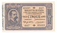Biglietto di Stato da 5 Lire - D.M. 25.10.1892 - Non comune - SUP