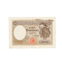 Biglietto di Banca da 25 Lire "Aquila" - D.M. 12.05.1919 - Raro - Tracce di graffetta, lievi strappetti e pieghe, ma biglietto genuino, migliore di BB