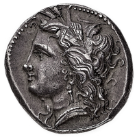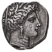 Metaponto - Statere databile al periodo 330-290 a.C. - Diritto: testa di Demetra coronata di spighe a destra - Rovescio: spiga di grano disposta verticalmente; dopra la foglia, a sinistra, un topo - gr. 7,93 - q.SPL
