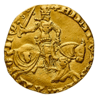 Filippo Maria Visconti (1412-1447) - Fiorino d'oro - Diritto: il Duca a cavallo verso destra brandisce una spada con la mano destra - Rovescio: il biscione dei Visconti entro una cornice quadrilobata - gr. 3,43 - Rara - BB
