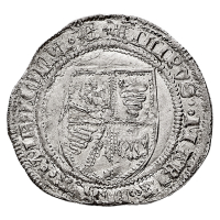 Filippo Maria Visconti (1412-1447) - Grosso da 3 Soldi - Diritto: stemma inquartato - Rovescio: Sant'Ambrogio seduto di fronte tiene uno staffile con la mano destra e il pastorale con la sinistra - gr. 3,67 - Rara - Lieve ondulazione del tondello, altrimenti migliore di leggi tutto