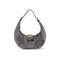 in pelliccia di Breitschwanz grigio con dettaglio in pelle effetto Lizard. Interno in tessuto rosso, manico regolabile.