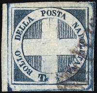 1860 - "Trinacria" 1/2 t. azzurro - Cert. Bolaffi e Diena