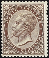 1863 - Definitiva 30 c. bruno tiratura di Londra - Cert. Diena - Firma G. Bolaffi