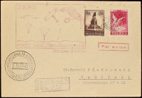 1945 - Festa dell'aviatore -.Raccomandata aerea del 2 settembre da Varsavia per città con cachet rosso della manifestazione all'aeroporto cittadino ancora occupato dai sovietici (annullo russo su francobolli polacchi)