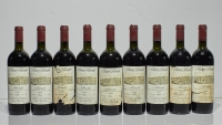 3 bts very high shoulder, 2 bts high shoulder, 1 bt soiled and stained label, 4 bts soiled, stained and