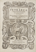 Petrarca, Francesco. Il Petrarca con l'espositione di M. Alessandro Vellutello. Venezia, Giovanni Antonio Bertano, 1584.