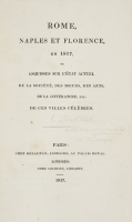 [Stendhal]. Esemplare fresco della seconda edizione stampata nello stesso anno della princeps del celebre volume Rome, Naples et Florence, en 1817, pubblicato a Parigi e Londra da Delaunay e Colburn nel 1817. Legatura coeva in mezza pelle verde con angoli, fregi e leggi tutto