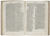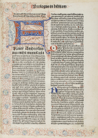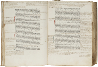 In 2° (258 x 194 mm); 422 carte. Testo su due colonne, esemplare completamente rubricato in rosso e blu, 2 grandi iniziali miniate in blu e rosso su 14 righe, 2 iniziali su 10