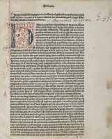 In 2° (310 x 205 mm); [3], CXXXVI [ma 146] carte. A carta A2 dedica di Daniele Gaetani, commentatore, a Leonardo Mocenigo, a carta A3r carme di Polidorus Cabaliatus e a carta