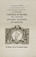 [Accademia di Fossano]. Adunanza tenuta dagli Accademici di Fossano in occasione delle auguste nozze di madama Carolina di Savoia col principe Antonio Clemente di Sassonia. Torino, Stamperia Reale, [1781].