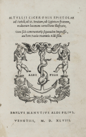 [Aldina - Classici]. Cicerone. In hoc volumine haec continentur. Rhetoricorum ad C. Herennium ... de inventione ... de oratore. Venezia, Aldo Manuzio, 03.1514.