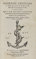 [Aldina]. Oribasio. Collectorum medicinalium libri XVII. Venezia, Paolo Manuzio, [1555?].