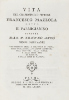 [Caratteri bodoniani]. Bel gruppo di pubblicazioni uscite da tipografie di Parma che produssero eleganti edizioni sullo stile bodoniano usando caratteri e fregi ispirati a Bodoni: tra gli altri la Vita del graziosissimo pittore Francesco Mazzola detto il Parmigianino leggi tutto