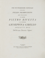 [Carte colorate]. Bel lotto che contiene numerose edizioni stampate su carte colorate: citiamo tra gli altri in carta verde i Versi nell'occasione delle solenni cerimonie battesimali per l'infante conte Luigi Ancini celebrate in Reggio, stampati dalla vedova di Bodoni leggi tutto