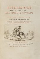 [Cavalli]. Benvenuti, Giuseppe. Riflessioni sopra gli effetti del moto a cavallo. Lucca, Iacopo Giusti, 1760.