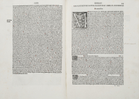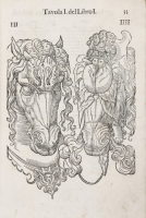 In 2° (316 x 220 mm); 2 tomi in 1 volume; [4], 250 [ma 248]; 266 [ma 268] pagine. 64 tavole xilografiche a piena pagina nel testo, marca tipografica ai