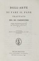 [Curiosa - Pane]. Curioso lotto dedicato alla panificazione: un esemplare con barbe Dell'arte di fare il pane trattato del sig. Parmentier nell'edizione milanese di Silvestri del 1817, entro brossura editoriale, il testo nell'edizione di napoli di Gaetano Nobili del leggi tutto