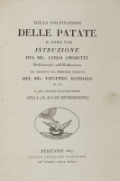 [Curiosa - Patate]. Raro lotto dedicato alla patata: citiamo tra gli altri un esemplare con barbe Della coltivazione delle patate e loro uso istruzione del sig. Carlo Amoretti ... col discorso sul medesimo oggetto del sig. Vincenzo Dandolo del 1817, Dell'utilità ed uso leggi tutto