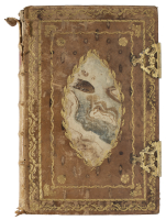 [Legatura]. Legatura Legatura di fine secolo XVIII (203 x 135 mm) in vitello biondo con al centro grande fleuron in cartonato marmorizzato, decorazione in oro ai piatti e al dorso, fermagli in metallo dorato, che contiene l'Uffizio della B.V. Maria per tutti i tempi dell'anno nell'edizione leggi tutto