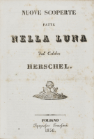 [Curiosa - Burla della Luna]. Curiosa - Burla della Luna Bell'insieme che contiene 3 placchette, cioè le Nuove scoperte fatte nella Luna dal celebre Herschel nell'edizione di Foligno del 1836, il Discorso del P.D. Gregorio Fontana ... sopra un problema ottico-astronomico relativo alla forza amplificativa de’ telescopj di leggi tutto