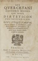 [Dietetica]. Du Chesne, Joseph. Diaeteticon polyhistoricon. Parigi, Claude Morel, 1606.
