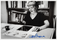 Carol Rama. Cartolina postale che ritrae la celebre artista torinese con sua firma autografa in calce (100 x 150 mm).
