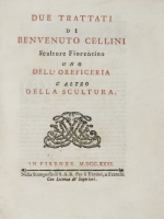 Cellini, Benvenuto. Due trattati ... Uno dell'Oreficeria l'altro della Scultura. Firenze, Giovanni Gaetano Tartini e Santi Franchi, 1731.