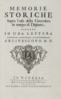 [Curiosa - Cioccolato e Caffè]. Il sapore del cioccolato e del caffè, con la prima edizione delle Memorie storiche sopra l'uso della cioccolata in tempo di digiuno, esposte in una lettera di Daniele Concina, stampata da Occhi a Venezia nel 1748, un esemplare con barbe leggi tutto