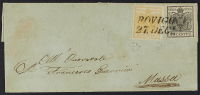 1850 - 5 c. giallo limone verdastro + 10 c. grigio nero su lettera del 27 dicembre da Rovigo per Massa - Rara combinazione di esemplari entrambi I tiratura - Cert. Diena - Firma Mondolfo