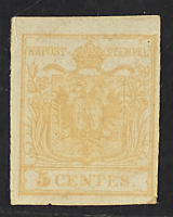 1850 - 5 c. giallo arancio chiaro - Cert. Diena