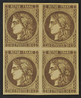 1870 - Emissione di Bordeaux 30 c. bruno blocco di quattro - Molto bello - Cert. Behr