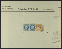 1871 - Terza emissione generale 20 c. azzurro coppia orizzontale tête-bêche + 40 c. arancio su piccolo frammento annullato a Réunion - Molto raro - Bordo del 40 c. a filo a destra ma coppia del 20 c. ben marginata - Ex collezioni Ferrary (vendita del 1924, cartoncino leggi tutto
