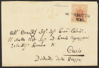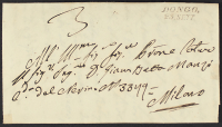 1848 - Dongo -Stampatello inclinato su lettera del 23 settembre per Milano - Nel testo il mittente racconta la consegna delle armi dei rivoluzionari dopo la sconfitta di Custoza e l'armistizio di Salasco - Documento di interesse storico
