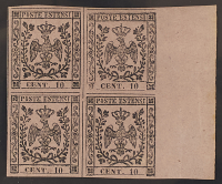 1852 - 10 c. rosa blocco di quattro bordo di foglio a destra - Cert. Cardillo